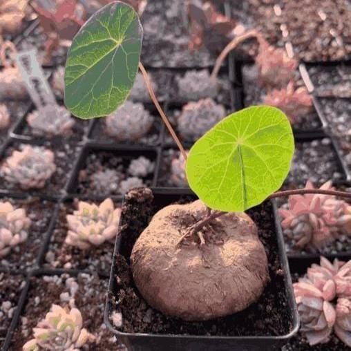 - Unique Appearance: Features a striking round tuber (caudex) with slender stems and vibrant green heart-shaped leaves.